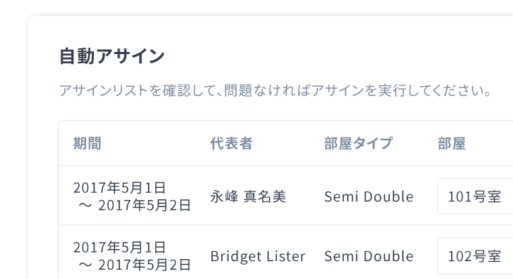 各項目のプルダウンを選択して、該当の部屋へアサイン