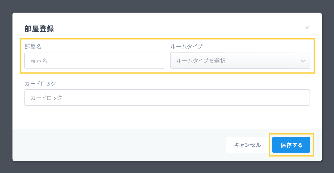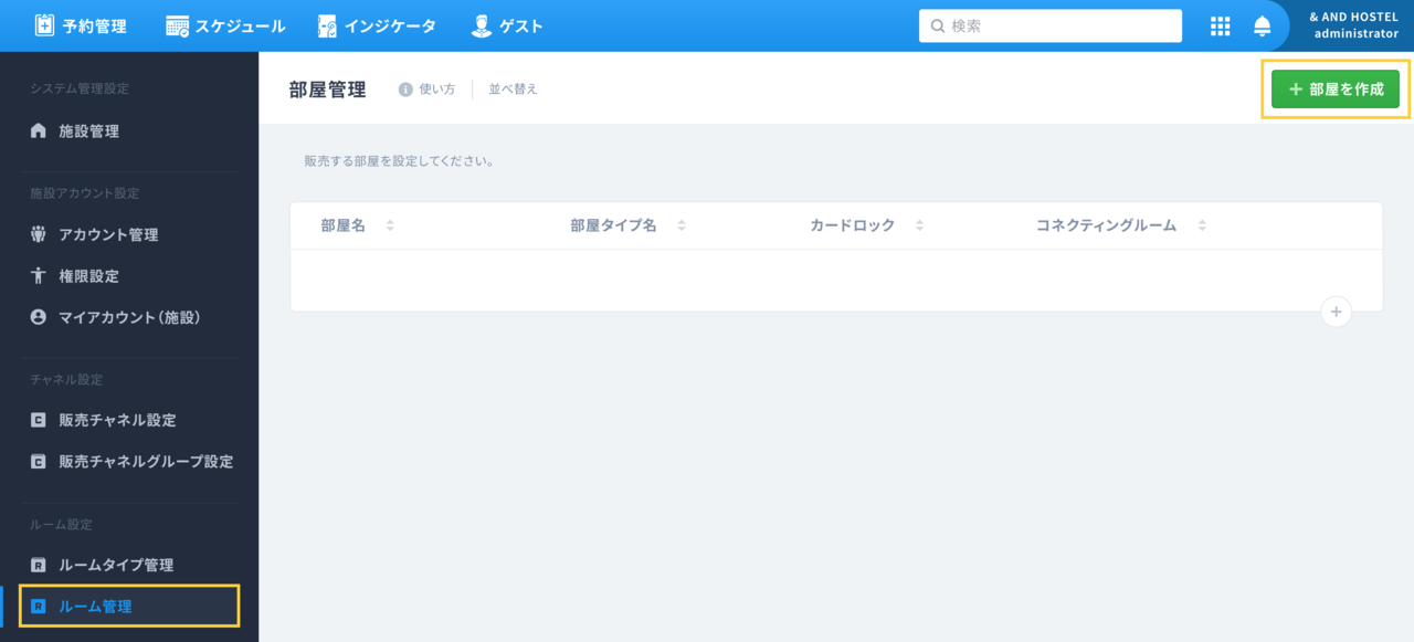 部屋タイプを登録したら、その部屋タイプに紐づく部屋を設定していきます。