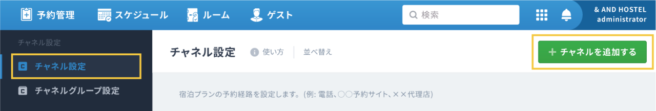 宿泊プランのチャネル(予約経路)を設定します。