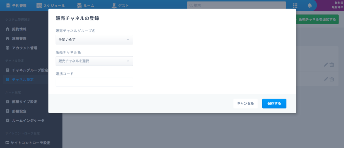 手間いらずで設定した予約サイト毎の「会社コード」を、inntoの「チャネルグループ設定」から販売チャネルを選択し、該当の連携コードを入力します。