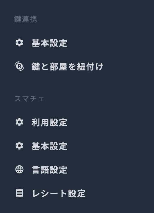 本リリースに伴い、「設定」メニューに新しく「鍵連携」「スマチェ」項目が追加されます。