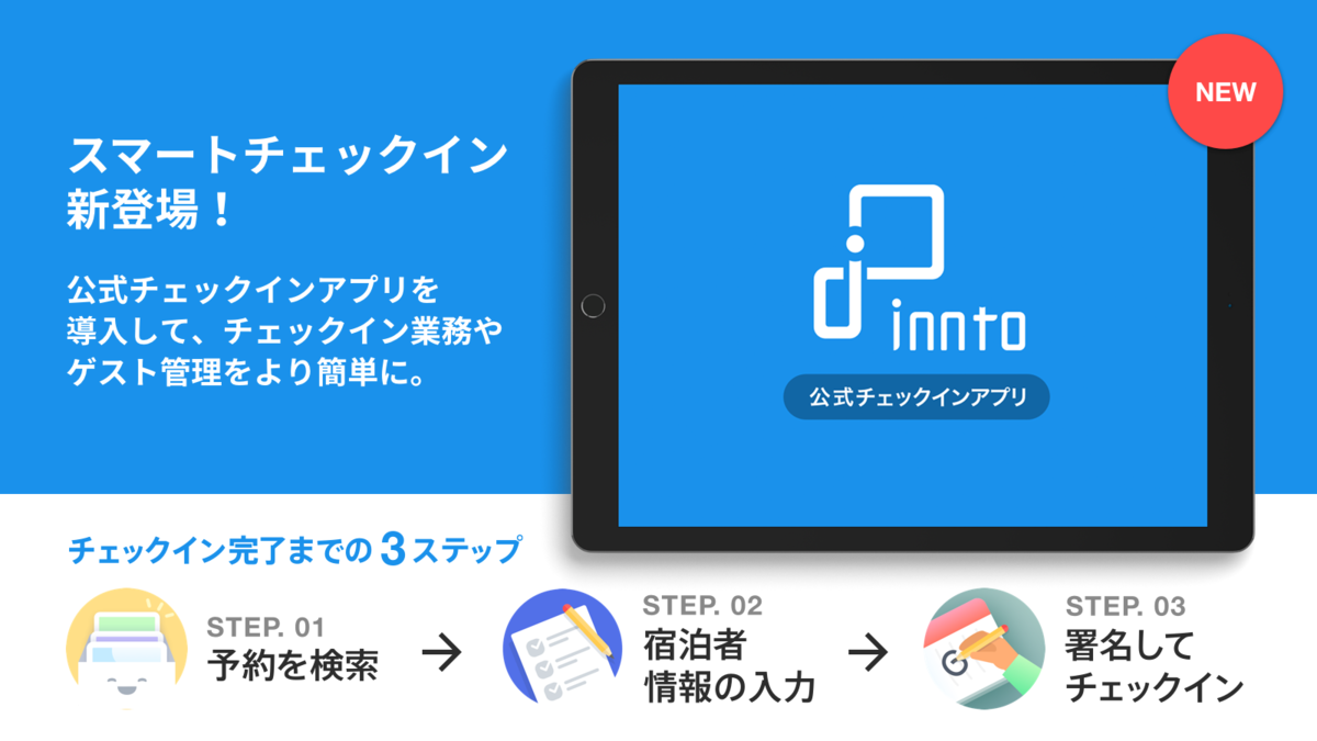 今回、2019年4月2日に新たなオプション機能のスマートチェックイン用タブレットアプリ「inntoスマチェ」をリリースします。