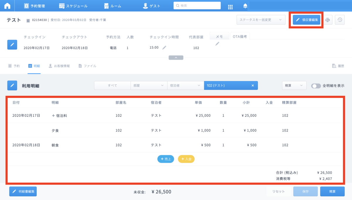 領収書の編集にて、但し書を変更することができるようになりました。