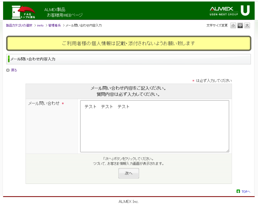 下の画像にあります「ALMEX製品お客様用WEBページ」が表示されます。