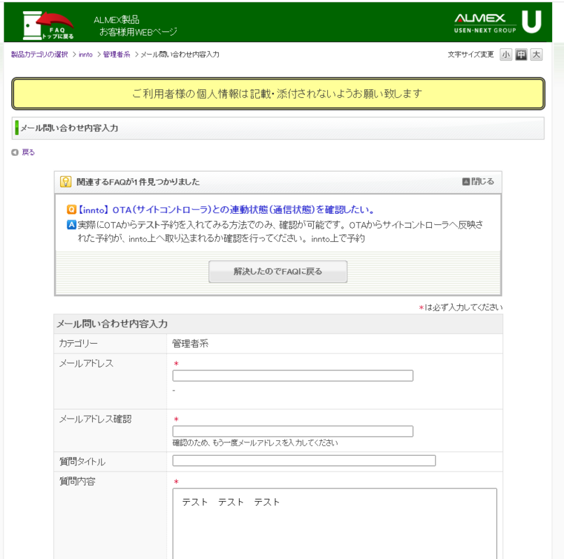 内容が合致する場合は、FAQでの回答内容を参考にしていただきますようお願いします。