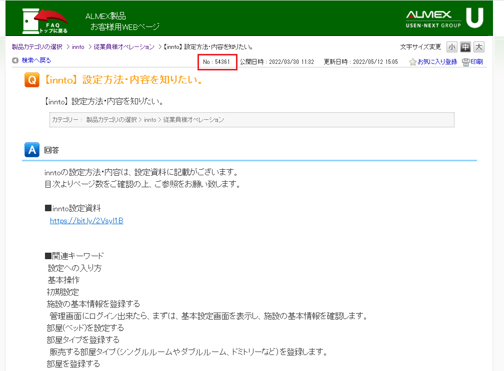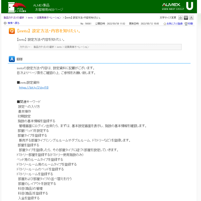 こちらがinntoの「FAQ」画面となります。