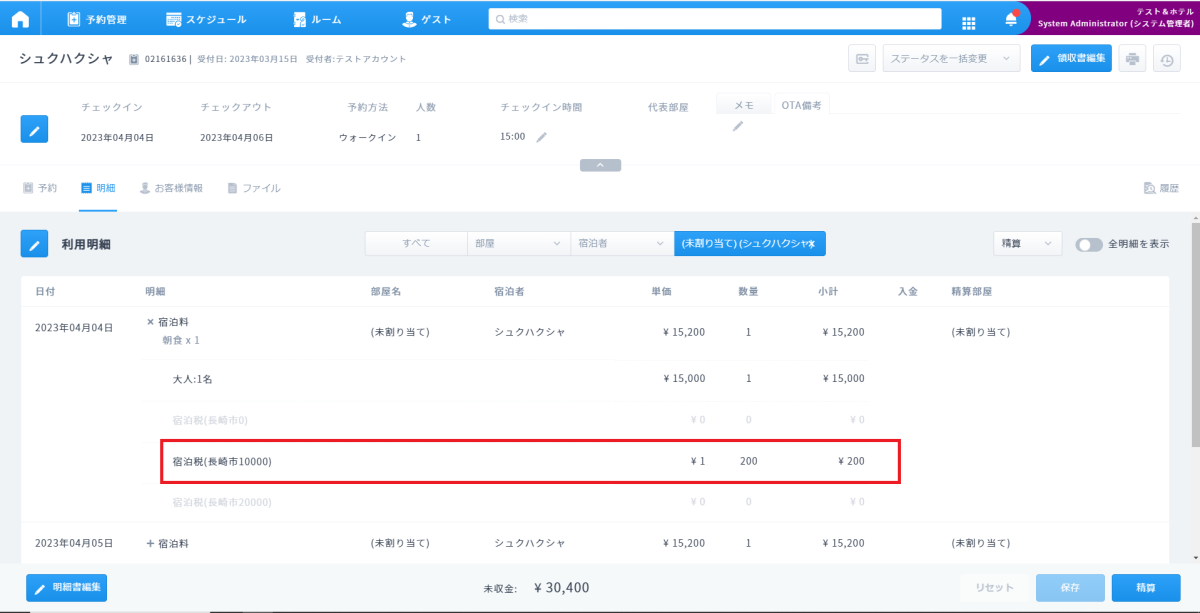 予約明細への宿泊税の表示