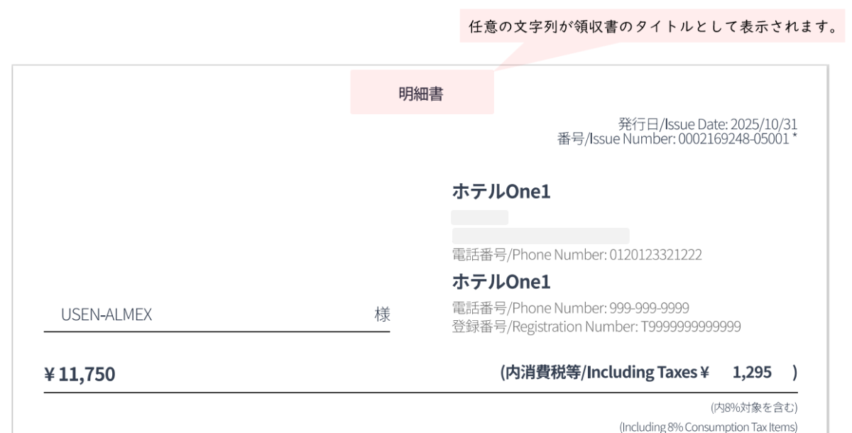 領収書の発行時に、タイトルを「領収書」以外に任意で変更できるようになります。