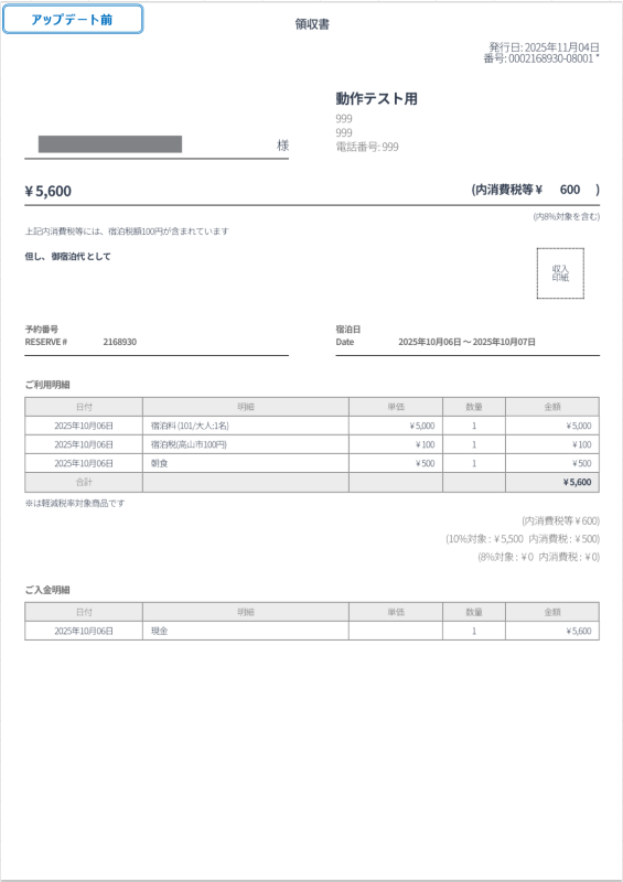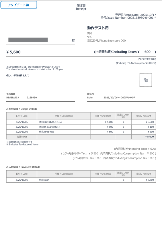 領収書の多言語(日英)対応と領収書タイトル変更機能を追加するアップデートを実施いたします。
