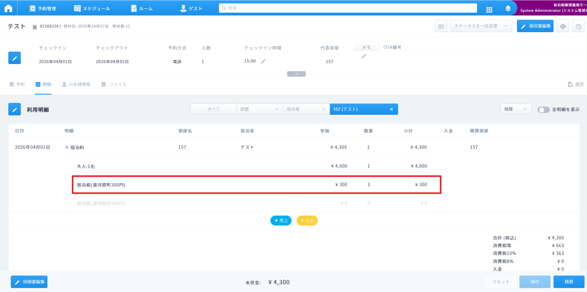 予約明細への宿泊税の表示