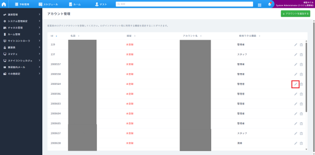 3.該当アカウントの編集ボタンをクリックし、アカウント編集画面を表示してください。