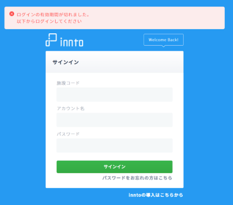時間内にそのワンタイムパスワードを入力すると、inntoログインが可能となる動作になります。