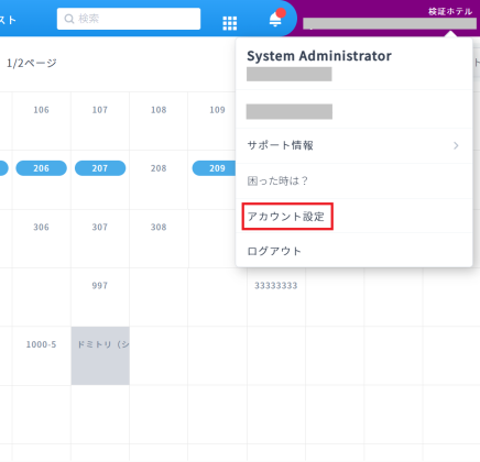 画面右上の施設名をクリックした[アカウント設定]から操作していただく必要があります。